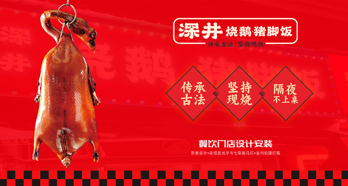 深井是一家烧腊店位于成华区动物园对面,希悦广告对门店整体进行了设计制作一条龙。