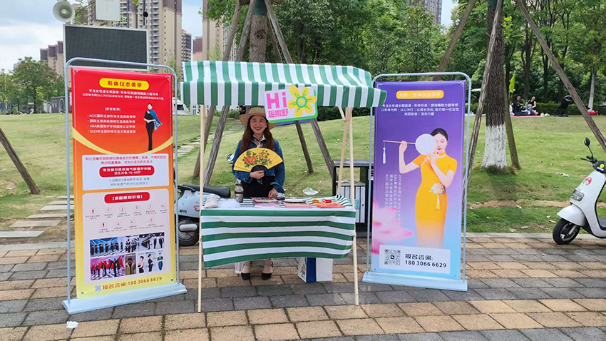 注意防风防雨:社区活动多在户外。易拉宝容易被风吹倒,建议用注水旗杆或重物压住海报架。重要信息不要放在容易被折到的边缘。